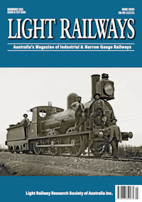 Back copies of the twelve most recent Light Railways are available at ther cover price of A$7.95 or A$8.95 each. LRRSA members benefit from a 25% discount, reducing the price to A$5.95 or A$6.71. Postage is additional (weight 160 gm).